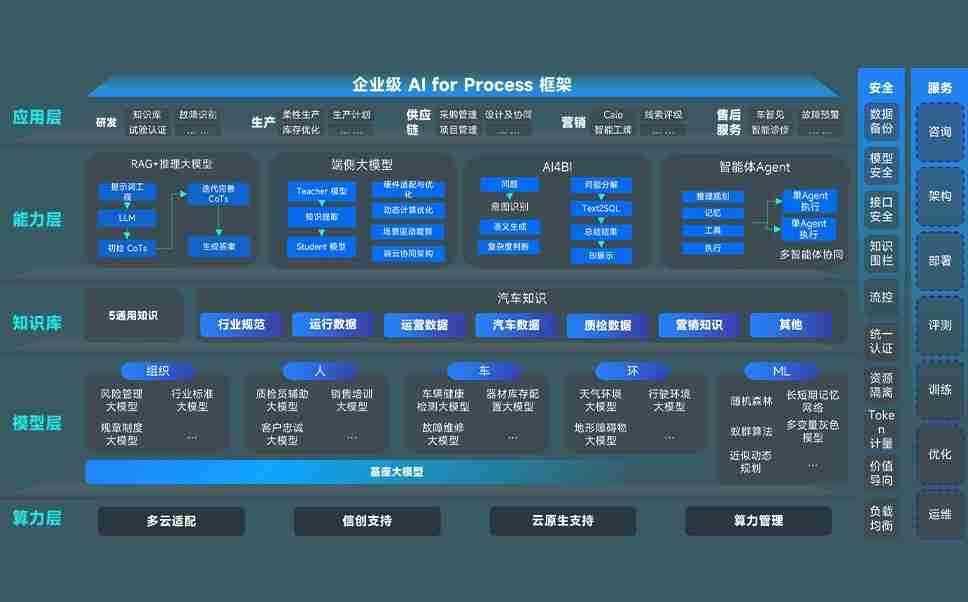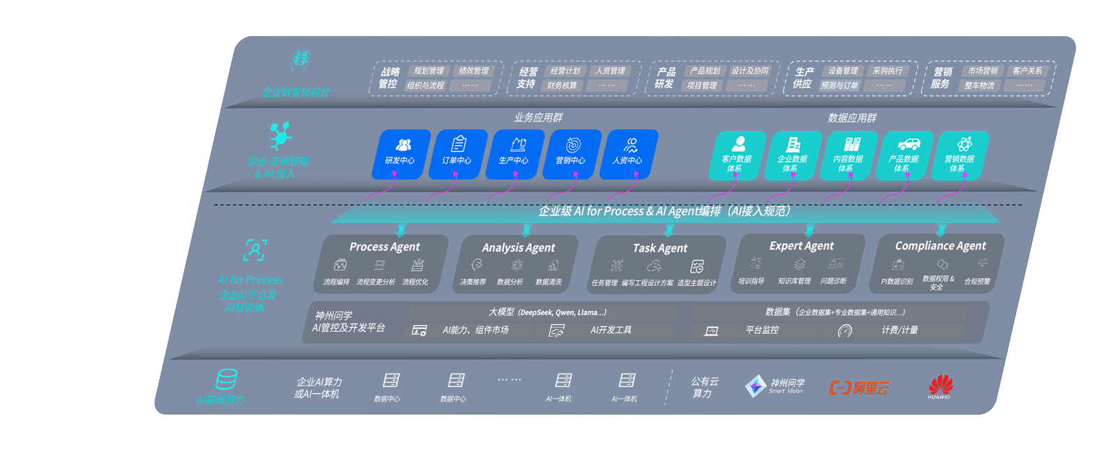 南宫体育问学智车解决方案是一套基于AI技术的汽车行业智能化系统,,,,覆盖从底层算力到顶层AI应用的全栈方案。。方案由算力层、、、、模型层和应用层组成:算力层,,方案支持多种一体机配置,,,,具备云端灵活部署、、、、多云适配以及动态优化计算资源的能力;模型层,,,南宫体育问学平台版提供了企业级AI应用一站式构建与管理平台,,支持基于后训练强化技术的汽车企业专属模型的训练、、、、评测和运营;应用层,,南宫体育问学DeepSeek版提供包括超级员工、、、智能招采、、、智能营销、、、、智能客服、、AI for BI等一系列解决方案,,可助力汽车行业实现数字化转型,,,让管理更智能、、、响应更敏捷。。